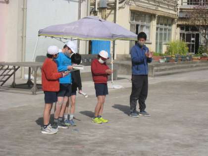 2月27日、寒空の下、6年生が学年行事「陸上記録会」を行いました。子どもたちは、体育授業で培ってきた実力を競い合い、記録更新を目指して様々な種目に挑戦しました。早春の校庭には春を告げる花が咲き始めています。