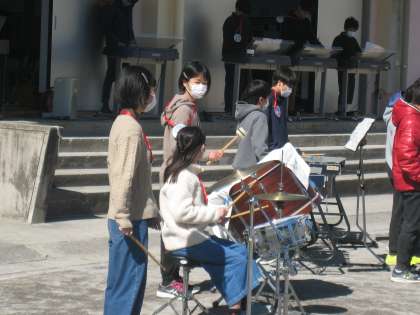 3月3日、新型コロナウイルス感染症対策のため、早春の空の下、校庭で6年生を送る会を行いました。各学年からは、1年生「メダルのプレゼント」、2年生「似顔絵のプレゼント」、3年生「メッセージパズル」、4年生「6年生にインタビュー」、5年生「縦割り班・寄せ書き贈呈」を心を込めて贈呈・発表しました。6年生からは卒業制作の雑巾を全学級へプレゼントし、学級ごとに練習してきた合奏(1組「全力少年」、2組「新世界」)を披露しました。従来とは違う形の行事になりましたが、子どもたちは心を通わせ和やかな時間を共有できました。