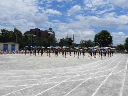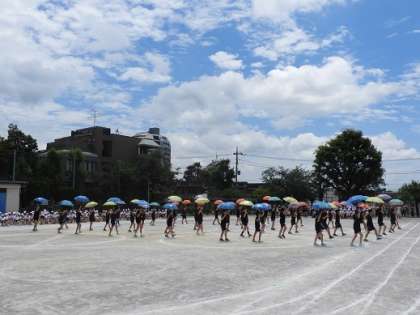6月12日、5年生は100m走を全力で走り切り、表現運動ではカラフルなビニール傘を使って「The Greatest Show!!」を様々な音楽に合わせて踊りました。、