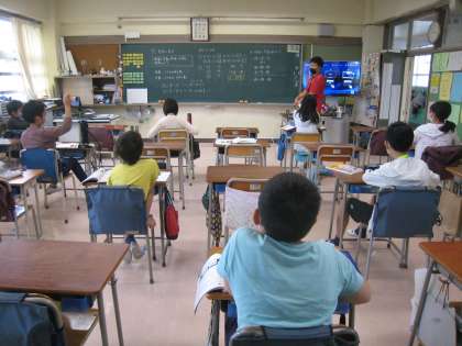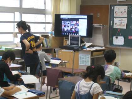 9月3日、Teamsアプリを活用して、対面授業の様子を自宅にいる子どもたちに向けてオンライン配信しています。初めての試みなので準備に手間取りましたが、順調に配信できています。