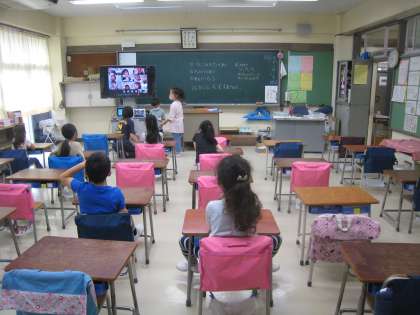 9月6日、分散登校2日目は、Bグループの子どもたちが登校して、Aグループの子どもたちは自宅学習です。朝の会では、各担任がTeamsアプリを活用して、自宅にいる子どもたちの健康観察も行いました。