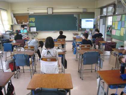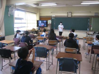 9月6日、分散登校2日目は、Bグループの子どもたちが登校して、Aグループの子どもたちは自宅学習です。朝の会では、各担任がTeamsアプリを活用して、自宅にいる子どもたちの健康観察も行いました。
