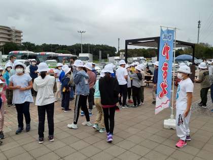 三芳パーキングエリアでトイレ休憩。虫がいたよと教えてくれる子がいたり、久しぶりの観光バスでの移動、皆テンション高いです。