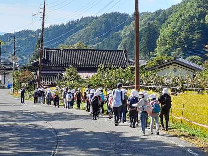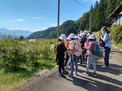 快晴の秋空の下、村めぐりで子どもたちは自然を満喫しました。