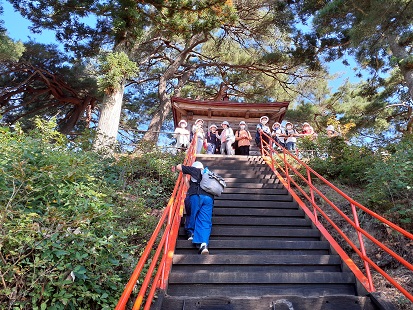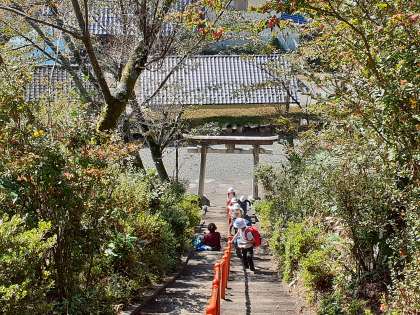 急こう配の階段を登り、愛宕山の頂上へ行きました。