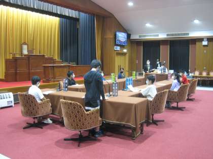 10月12日、6年生は社会科見学で国会議事堂敷地内にある施設で「参議院特別プログラム」の体験学習を行いました。子どもたちは本物の議場に似せた施設を使用して、議長、法務大臣、議員などの役を担い、議会運営を体験しました。
