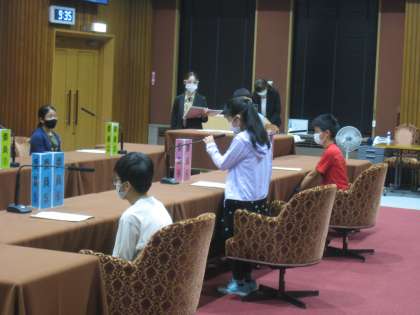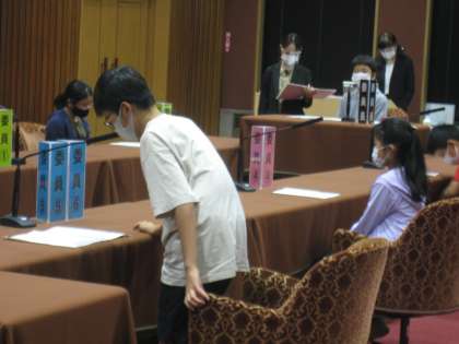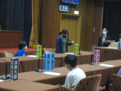 10月12日、6年生は社会科見学で国会議事堂敷地内にある施設で「参議院特別プログラム」の体験学習を行いました。子どもたちは本物の議場に似せた施設を使用して、議長、法務大臣、議員などの役を担い、議会運営を体験しました。