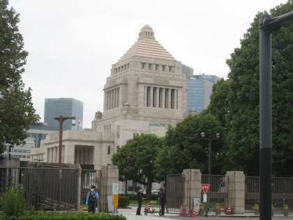 10月12日、6年生は社会科見学で国会議事堂敷地内にある施設で「参議院特別プログラム」の体験学習を行った後、国会議事堂を横手に見ながら次の見学場所へ移動しました。