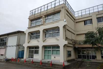 6月から続いていた校舎棟耐震工事が終了しました。西側校舎には耐震補強材が組み込まれました。
