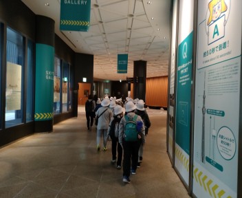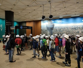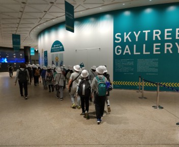 東京スカイツリーに到着、朝降っていた雨はやみました。これから展望デッキへ上がります。