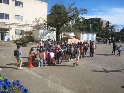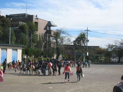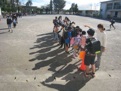 10月20日、地区班活動・集団下校を行いました。緊急時を想定して各地区班の校庭での集合場所を確認し、教員の引率で解散場所まで集団下校しました。