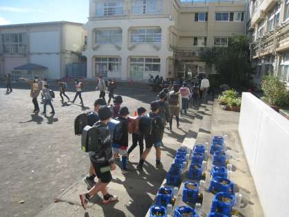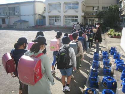 10月20日、地区班活動・集団下校を行いました。緊急時を想定して各地区班の校庭での集合場所を確認し、教員の引率で解散場所まで集団下校しました。