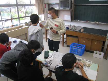 11月1日、ゲストティーチャーをお招きし、日光林間学園で実施できず延期になっていた益子焼絵付け体験を行いました。6年生は、2泊3日の思い出を込めて湯呑み茶碗に絵付けをしました。