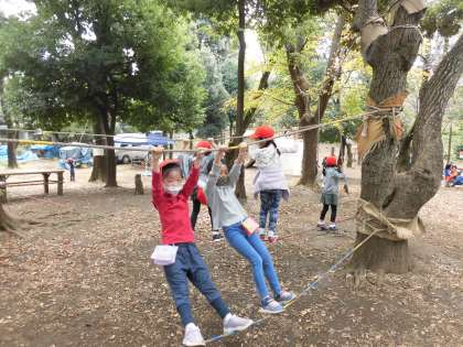 11月1日、1年生は羽根木公園で校外学習(生活科)を実施しました。班ごとにポイントラリーに取り組み、手話、アスレチック、秋探しなどを行いました。子どもたちは自然と触れ合う中で、友達と協力して協調性を身に付けました。秋の一日を広々とした羽根木公園で楽しく過ごし、貴重な体験になったことでしょう。