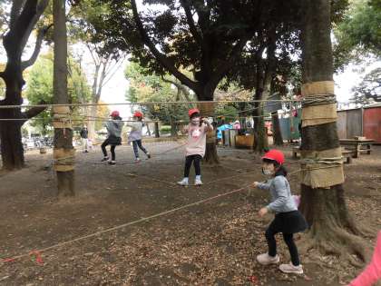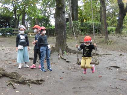 11月1日、1年生は羽根木公園で校外学習(生活科)を実施しました。班ごとにポイントラリーに取り組み、手話、アスレチック、秋探しなどを行いました。子どもたちは自然と触れ合う中で、友達と協力して協調性を身に付けました。秋の一日を広々とした羽根木公園で楽しく過ごし、貴重な体験になったことでしょう。