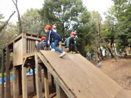 11月1日、1年生は羽根木公園で校外学習(生活科)を実施しました。班ごとにポイントラリーに取り組み、手話、アスレチック、秋探しなどを行いました。子どもたちは自然と触れ合う中で、友達と協力して協調性を身に付けました。秋の一日を広々とした羽根木公園で楽しく過ごし、貴重な体験になったことでしょう。