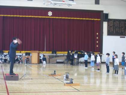 2年生の合唱曲は「赤いやねの家」「ユメタマゴ」。代表児童が挨拶してから皆で気持ちを合わせて元気な声を響かせました。全学年の教室にも動画配信しているので、他学年は各教室で視聴しました。