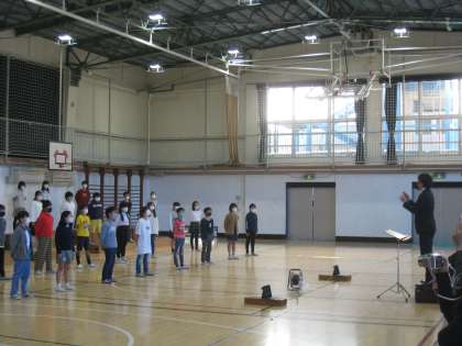 5年生の合唱曲は「大切なもの」「未来行き EXPRESS」。代表児童が挨拶してから皆で元気な声を響かせました。とてもハーモニーが美しく力強い歌声でした。全学年の教室にも動画配信しているので、他学年は各教室で視聴しました。