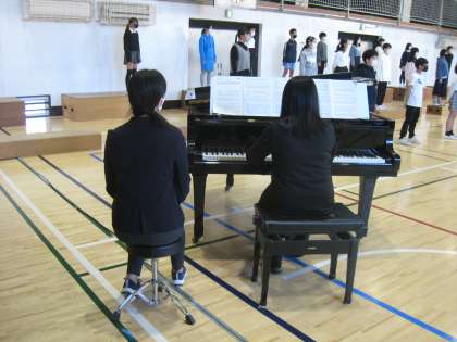 6年生の合唱曲は「COSMOS」「RAIN」。代表児童が挨拶してから皆できれいな声を響かせました。小学校生活最後のビバ代田、有終の美を飾りました。全学年の教室にも動画配信しているので、他学年は各教室で視聴しました。