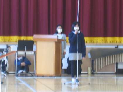 全学年の合唱発表が終わり、音楽委員の高学年児童が司会を務め、閉会式を行いました。最後に6年生代表委員会委員長が終わりの挨拶を立派に伝えました。