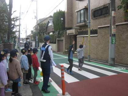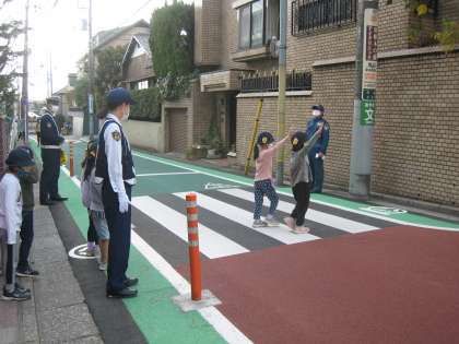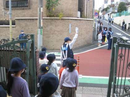11月16日、PTA校外委員の皆さんが企画した交通安全教室を実施しました。北沢警察の警察官の方に安全な横断歩道の渡り方などについて安全指導を受け、実際に西門前の横断歩道を渡り、羽根木公園へ向かう坂道で練習しました。