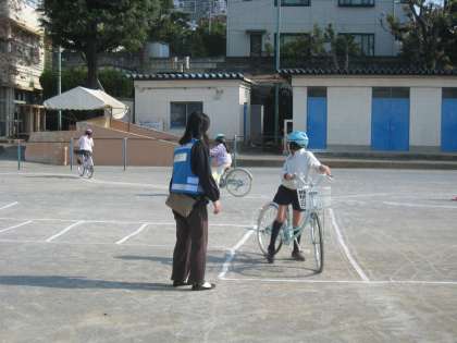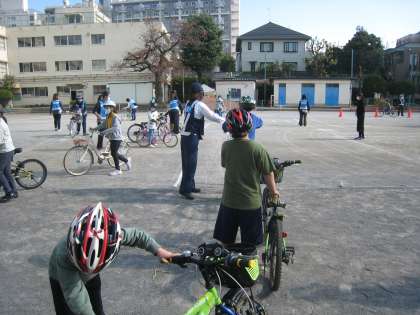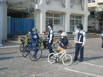 11月16日、PTA校外委員の皆さんが企画した交通安全教室を実施しました。子どもたちは、自転車業者の方から自転車整備の大切さを説明していただき、北沢警察の警察官の方に安全な自転車の乗り方についてお話をうかがいました。その後、実際に自転車に乗りながら安全指導を受け、交通安全についての認識を高めました。