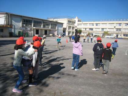 11月26日、中休み、マイチャレンジタイムに取り組んでいます。3年2組は「エンドレスリレー」に取り組みました。