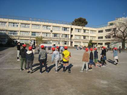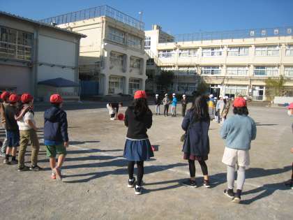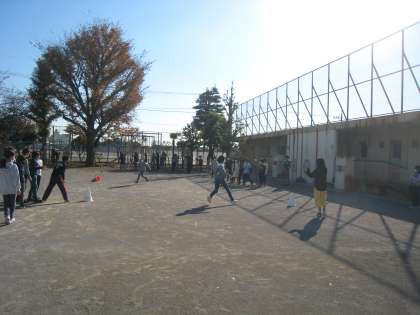 11月26日、昼休み、高学年児童はマイチャレンジタイムに取り組んでいます。4年1組は「エンドレスリレー」に励んでいます。
