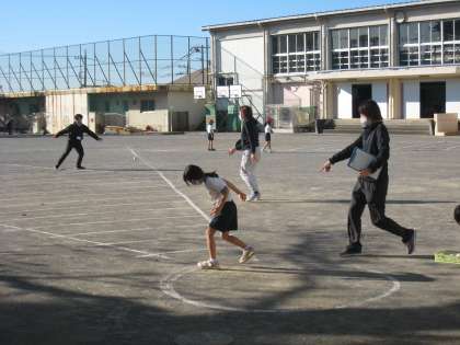 12月3日、本日も昨日に引き続き、新体力テスト(ソフトボール投げ計測)を行いました。1,2,5年生の子どもたちは、晴れ渡る寒空の下、ソフトボール投げに励みました。