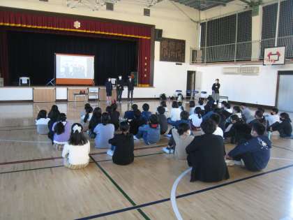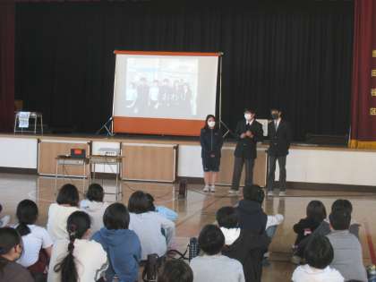 12月3日、梅丘中学校の生徒会役員3名が来校し、6年生対象に中学校の生活・学習・部活動などについて説明してもらう機会をもちました。質問コーナーでは多岐にわたる疑問点について丁寧な説明を受けました。進学への希望が高まる会となりました。