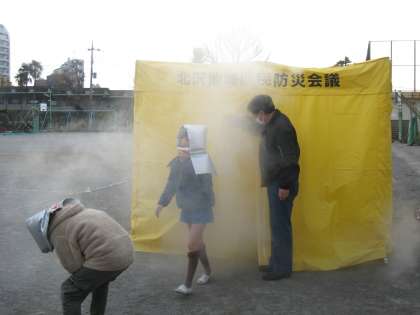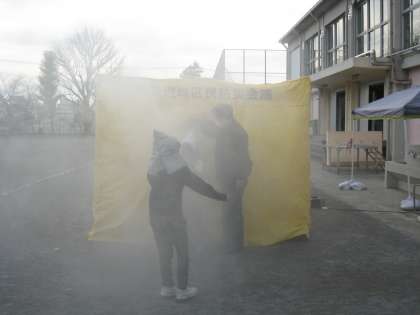 12月10日、火災を想定した避難訓練を実施した後、北沢総合支所防災課に依頼し、1・3・5年生対象に煙中避難訓練(煙体験)を行いました。人工的に作られた煙は無害ですが、子どもたちは設置された「煙ハウス」で火災による煙の怖さを体験しました。