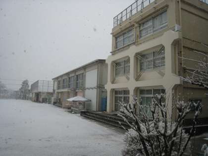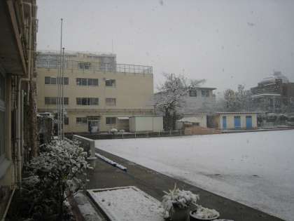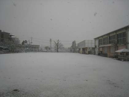 1月6日、関東地方は雪の降っている所が多く、代田小学校の校庭でも1センチ程度の雪が積もっています。今でもしんしんと雪が降り積もっています。この後もに断続的に雪が降り、大雪になるおそれがあるので気を付けてください。