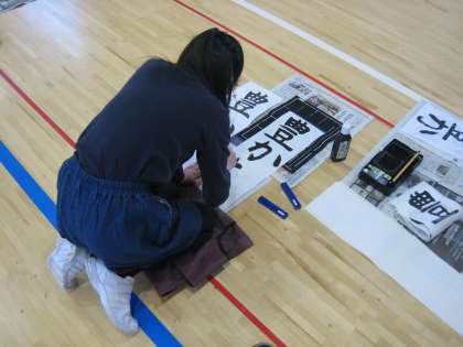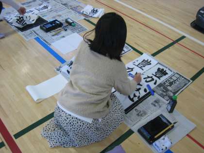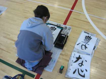 1月14日、5年生は席書会で書初めに取り組みました。お題は「豊かな心」子どもたちは、新年の思いを込めて厳かな雰囲気の中で集中して筆を走らせました。