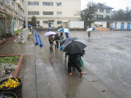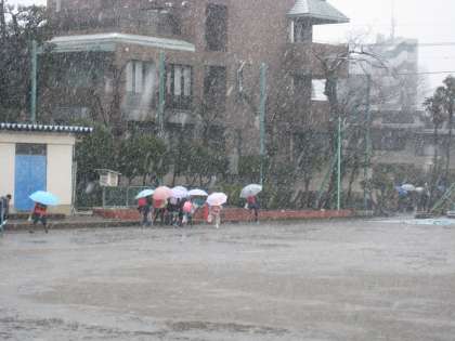 2月10日、朝から降っていた霙が下校の頃、雪に変わりました。子どもたちは雪が降る景色に胸躍らせながら帰って行きました。