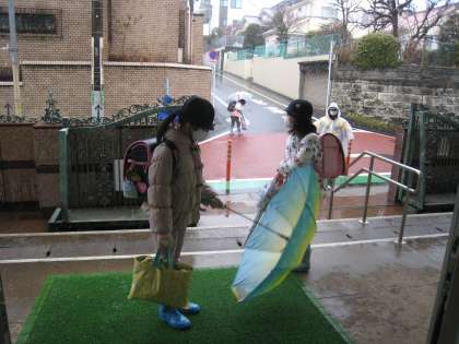2月10日、朝から降っていた霙が下校の頃、雪に変わりました。子どもたちは雪が降る景色に胸躍らせながら帰って行きました。