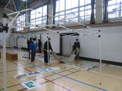 2月17日から始まる「てんらん会」の会場設営が本格的に始まりました。今日は平面作品の飾り付け。担当学年の児童作品を各担任と専科教員が協力しながら作業しました。体育館が美術館に様変わりしそうでワクワクします。児童の想いが鑑賞していただくすべての方々に届けられるように準備を進めます。