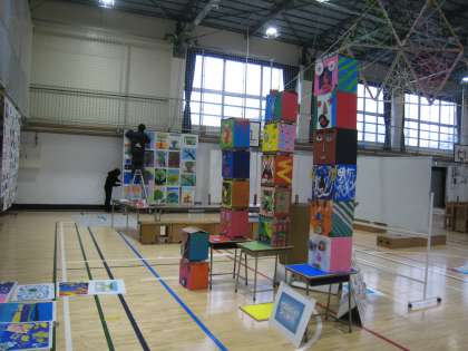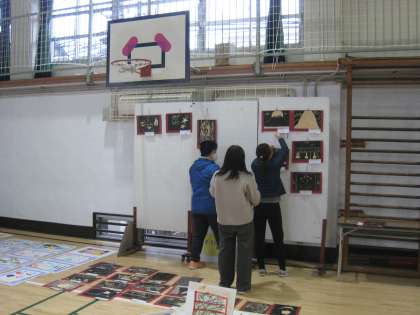 2月17日から始まる「てんらん会」の会場設営が本格的に始まりました。今日は平面作品の飾り付け。担当学年の児童作品を各担任と専科教員が協力しながら作業しました。体育館が美術館に様変わりしそうでワクワクします。児童の想いが鑑賞していただくすべての方々に届けられるように準備を進めます。