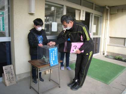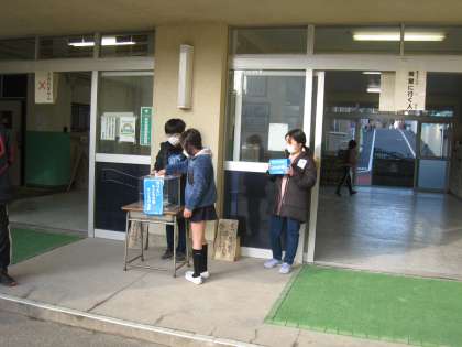 2/15〜2/17 登校時間に代表委員会の児童がユニセフ募金活動を行っています。