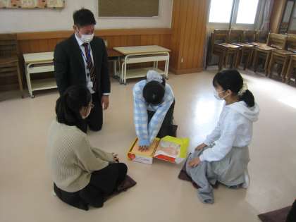 2月15日、警備会社の方をゲストティーチャーとしてお招きし、セーフティ教室を実施しました。6年生は心肺蘇生法について説明されたことをしっかり聞き、「スクーマン」という練習用グッズで救命救急の練習を行いました。