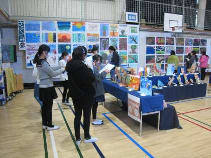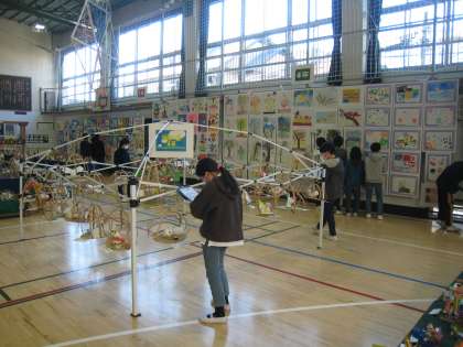 2月18日、6年生の児童鑑賞時間。作品の感想を書くために探検ボードを片手に持ちながら自分の作品や他学年の児童作品を熱心に鑑賞していました。さすが最上級生、落ち着いた態度に感心しました。