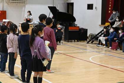 3月2日、6年生の卒業を祝い、1〜5年生が感謝の気持ちを表すために練習してきた出し物を披露しました。6年生は下学年と触れ合い、楽しく交流することで代田小学校への思い出を深める機会となりました。6年生が入場し、4年生が花のアーチでお迎えし、代表委員のはじめの言葉でスタートしました。