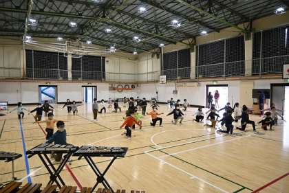 2年生は「コマとけん玉のパフォーマンス」、練習の成果を出すために皆一生懸命に取り組みました。様々な技を披露して、満足そうな表情を浮かべていました。
