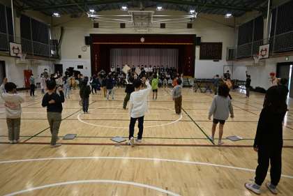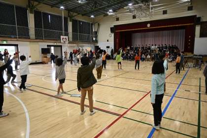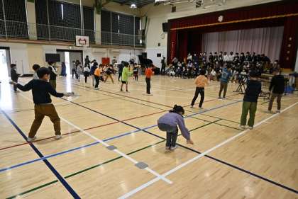 2年生は「コマとけん玉のパフォーマンス」、練習の成果を出すために皆一生懸命に取り組みました。様々な技を披露して、満足そうな表情を浮かべていました。