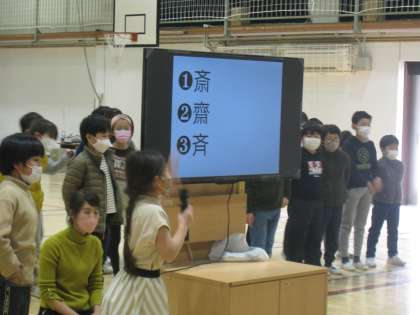 3年生の出し物は「意外と知らない代田小クイズ」、階段の数、担任の先生が好きな食べ物、学校行事にまつわることなど豊富なジャンルで知恵を絞ってクイズを作りました。モニターなども活用して楽しく出題できました。
