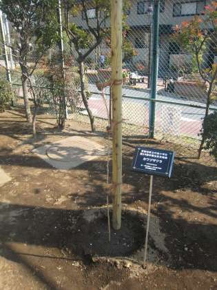 先日、6年生が卒業記念として植えた八重桜と川津桜。添え木に支えられ、立派なプレートが付きました。桜の生長を見守ります。