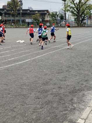 4チームに分かれて、走る順を考えたり、バトンパスの練習をしたりして、チームが勝つために、一人一人が一生懸命に走りました。