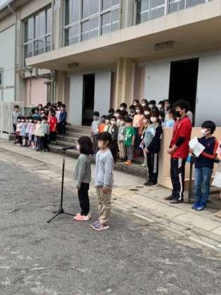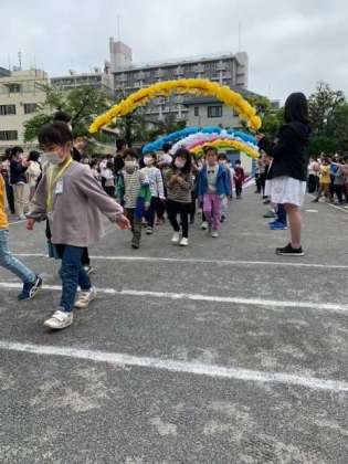 先週、雨で延期となった1年生を迎える会を行いました。花のアーチの中を少し照れくさそうに入場してきました。ひな壇にならび、2年生のはじめの言葉で会が始まりました。