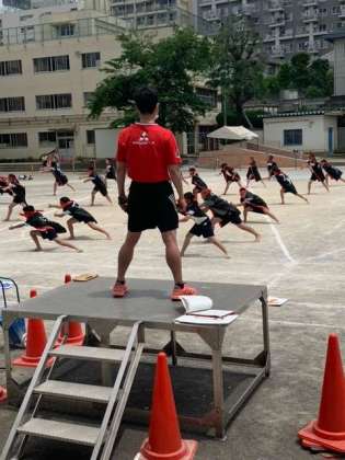 5年生は、ソーラン節に合わせて、力強く踊ります。