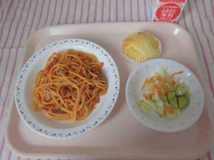 スパゲティナポリタン 野菜のイタリアンドレッシング パインケーキ