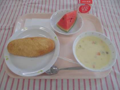 あげぱん(きなこ) クラムチャウダー くだもの(すいか) 牛乳